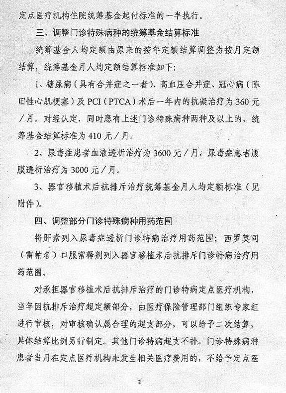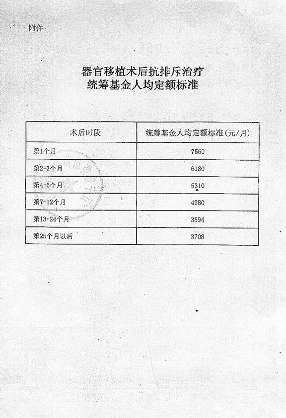 3、器官移植术后抗排斥治疗统筹基金月人均定额标准(详见附件)。