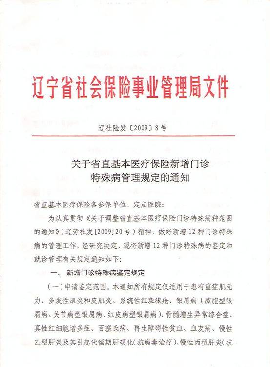 关于转发《关于省直基本医疗保险新增门诊特殊病管理规定的通知》(辽社险发[2009]8号)的通知