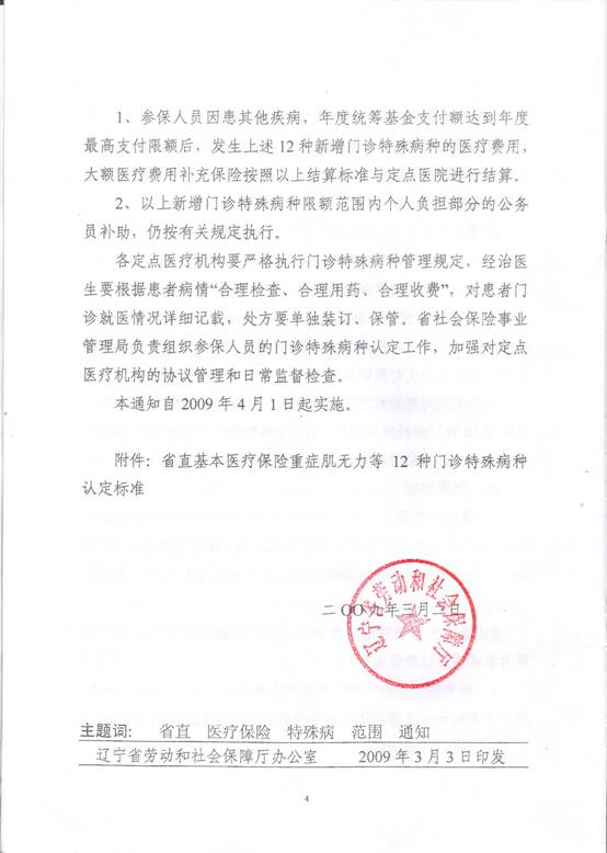 关于转发《关于调整省直基本医疗保险门诊特殊病种范围的通知》(辽劳社发[2009]20号)的通知