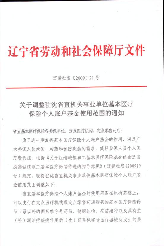 关于转发《关于调整驻沈省直机关事业单位基本医疗保险个人账户基金适用范围的通知》的通知