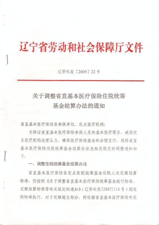 关于转发《关于调整省直基本医疗保险住院统筹基金结算办法的通知》(辽劳社发[2009]22号)的通知