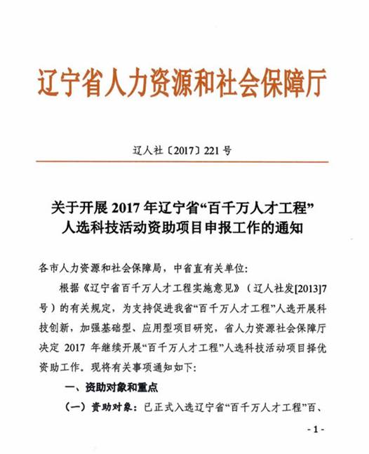 为做好2017年辽宁省“百千万人才工程”人选科技活动资助项目申报工作,现转发通知如下: